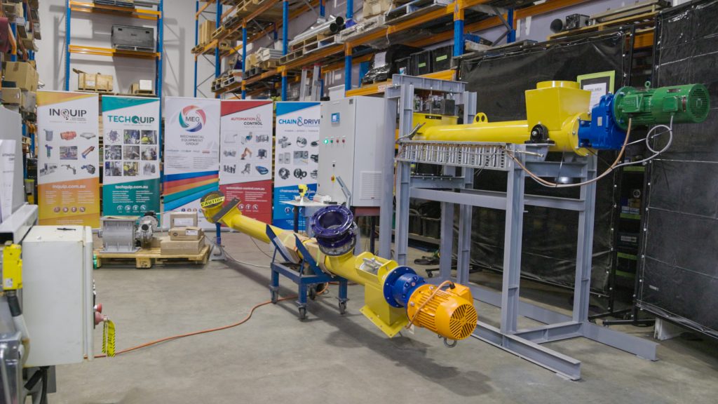A pivoted weigh screw dosing system was developed using a rotary valve and screw conveyors supplied by us to transfer material from the day bin. The pivoted weigh screw continuously measures throughput, enabling precise control of binder feed. The electrical and control system, including PLC integration, was developed by Automation and Control, which monitors the screw speed and adjusts the rotary valve to maintain the required dosing rate.